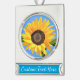 Gelbe Sonnenblume auf blauem Himmel Ihr Text Banner-Ornament Silber