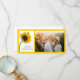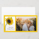 Schicken Sie Ihre Gedanken der Wertschätzung und Dankbarkeit nach Ihrem Sommer oder Herbst Verlobung Garten Party, Brautparty oder Heirat Zeremonie und Empfang mit der hübschen Sonnenblume auf White Wedding Dankeschön Foto Card. Diese elegante Blütenhochzeit dank der Fotokarte zeigt ein nahes Blumenfoto mit einer gelben Sonnenblumenblüte auf dem Stiel in einer Glasvase mit weißem Hintergrund.