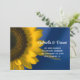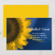Verkünden Sie Ihren Sommer oder Herbst private Ehe oder geheime Entdeckung mit der hübschen Sonnenblume auf Blauer Ehe / Elopement Ankündigung. Diese elegante, individuell gestaltete Blütenehe oder Entdeckungsankündigung zeigt ein Blumenfoto einer gelben Sonnenblume auf blauem Hintergrund.