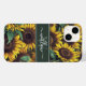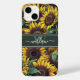 Rustikales Sonnenblumenmuster mit Script Monogram Phone Case. Einzigartige und trendige Sonnenblume mit gelben und grünen Sonnenblumenmustern, mit einer individuellen Monogramm-Vorlage und einer eleganten Kalligraphie-Schriftzeichen-Vorlage. Dieses hübsche Bauernhaus inspiriert Telefonabdeckung würde ein nachdenkliches Geschenk für Mama, Tochter, Oma, etc. machen.