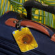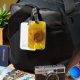 Eine hellgelbe Sonnenblume und eine kleine Biene. Klicken Sie auf Personalisieren und ersetzen Sie das Bild mit Ihrem eigenen, oder verlass es, wie es ist. Kann auch verwendet werden, um Schultaschen zu markieren.
