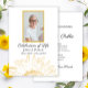 Erleben Sie die hübsche gelbe Sonnenblume Grafische Feier des Lebens. Diese elegante und fröhliche, maßgeschneiderte, blumengeschmückte Trauerfeier lädt zu einem digital verbesserten Blumenfoto mit einer gelben Sonnenblumenblüte und einem hellen weißen Hintergrund ein. Personalisieren Sie es mit einem Bild, dem Namen des Verstorbenen und dem Datum der Geburt und des Todes. Erhältlich als gedruckte Einladung zum Verschicken und/oder als digitaler Download für den einfachen digitalen Austausch online.