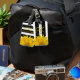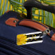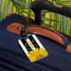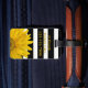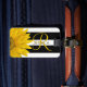 Gelbe Sonnenblume schwarz u. weiße Streifen mit Gepäckanhänger