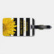 Blumenthema des modernen, Schwarzweiss-Streifenlandes, personalisierter Gepäckumbau stilvoll, gestreifter Schwarzweiss-Hintergrund mit gelber Sonnenblume auf der links Seite. Name in der modernen schwarzen Beschriftung, bedeckt auf einem Zusammenbringen, sonniges Gelb, elegante Skriptmonogramminitiale. Anmerkung: Alle Bilder werden gedruckt. Rückseite hat die gleiche Blumensonnenblume und Streifen entwerfen. Bereiten Sie vor, um auf der Rückseite mit kundenspezifischer Textschablone zu Telefonnummer oder anderer Kontaktinformation im Falle des verlorenen Gepäcks während der Ferien oder der Geschäftsreise zu personifizieren. Land-Chic, nobler Reise-Gepäckanhänger für sie. Perfekter Gepäckanhänger für Sommer und Fall. Koordinierenpaßhalter in unserem Zazzle.com/angela65-Geschäft.
