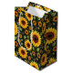 Gelbe Sonnenblumen auf schwarz Mittlere Geschenktüte