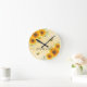 Gelbe Sonnenblumen Bienen rustikales Monogramm-Skr Runde Wanduhr