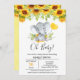 Niedliche Sonnenblumen und Elefantentheater geschlechtsneutrale Babydusche mit einem niedlichen Elefanten, einem gelben Ballon und blühenden Sonnenblumen. Diese Elefanten-Babydusche-Einladung ist ideal für eine geschlechtsspezifische Elefantendusche.