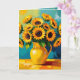 Eine schöne Karte, um ihr einen guten Geburtstag zu wünschen. Diese Karte zeigt eine wunderschöne Abbildung einer gelben Sonnenblume in einer hübschen gelben Vase, die im Stile eines Impasto hergestellt wurde. Im Inneren wünscht jemand einen schönen Tag. Diese Karte ist gut für jede Frau, Tochter, Mutter, Schwester, Ehefrau, Oma oder Tante.
