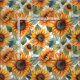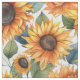 Dieser Stoff zeichnet sich durch hellgelbe Sonnenblumen und grüne Blätter aus.