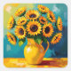 Gelbe Sonnenblumen in einer Gelbvase Quadratischer Aufkleber