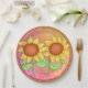 Gelbe Sonnenblumen Texturierte Rosa Grüne Blüte Pappteller