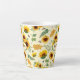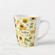 Der Name und die Tasse sind individuell einstellbar und bedruckt mit bemalten Gartensonnenblumen, Wabenbäumen und Honigbienen, Gelb-, Braun- und Grüntönen.