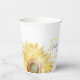 Personalisieren Sie diese hübschen Gelbblüten Aquarell Hochzeitspapier Cups für Ihre lässige und dennoch klassische Sommerheirat Empfang oder Brautparty Garten Party. Diese informellen und eleganten Einwegbecher verfügen über ein digital Aquarell gemaltes Blumenfoto mit gelben Blütenblättern und weißem Hintergrund. Einzigartige Inspiration oder Idee für eine Sommerfeier.