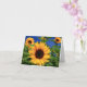 Brighten Sie jemandes Tag mit einer handschriftlichen Notiz! Diese bezaubernde Blumenkarte weist ein Feld mit hellen gelben Sonnenblumen auf, die vor hübschem Himmelblau hervorgehoben sind. Die Innenseite ist leer für Ihre Nachricht.