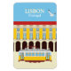 Es ist eine Reise in die Vergangenheit, über Hügel und mittelalterliche Straßen, in Vintagen Straßenbahnen aus den 30er Jahren. Die gelbe Tram von Lissabon bringt Reisende auf eine lustige Reise mit viel zu entdecken. Es ist eine beliebte Touristenattraktion. Die meisten der originalen Details der 30er Jahre, wie das polierte Holzinterieur, wurden beibehalten. Eine gelbe, alte Straßenbahn in Lissabon ist ein Pflichtprogramm. Die gelben alten Straßenbahnen sind immer noch Teil des öffentlichen Verkehrsnetzes der Stadt und führen Sie durch die alten engen Straßen mit ihren Höhen und Tiefen und engen Kurven. Es ist unmöglich, dieses bezaubernde gelbe Fahrzeug nicht zu mögen. Wenn Sie einen Freund, Kollegen, Lehrer oder einen Verwandten portugiesischer Staatsangehörigkeit haben, werden sie das zweifellos zu schätzen wissen. Wenn Sie ein Andenken an Portugal gewollt haben, ist die berühmte gelbe Straßenbahn ideal für Sie. Und wenn Sie eine Reise nach Lissabon planen und nicht aufhören können, darüber nachzudenken, was Sie in Lissabon erwartet, wird sich vielleicht auch eine Leckerei anbieten! Alle Wörter sind anpassbar. Die Illustration ist einfach und farbenfroh mit den hellen Farben von Lissabon. Es wurde durch alte Reiseplakate inspiriert. Die Fassade mit ihren zahlreichen Fenstern stammt aus den Gebäude Terreiro do Paço oder Praça do Comérico, neben dem Tagus River, dem öffentlichen Wohnzimmer von Lissabon. Wie immer, können Sie die Wörter, den Schriftart, die Farben ändern, sie anderswo platzieren oder entfernen.