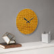 Gelbe Strickwolle, hochauflösende Textur. Große Wanduhr