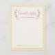 Diese hübsche Karte "Wishes for Baby" wurde entworfen, um mit der Kollektion "Sweet Floral" zur Geburtsankündigung zu koordinieren und zeigt den Satz "Sweet Wishes for Baby (Name)", umrahmt von einem Kranz aus zarten Blumen und Blättern. Unten ist Platz für den Namen des Freundes oder Familienmitglieds. Das Design und der Text sind auf ein gelbes, handgezeichnetes Gingham-Muster gesetzt. Diese Karte ist perfekt für Babypartys sowie für Brautpartys und Hochzeiten. Andere Satzideen sind: "Sweet Wishes for the Bride-to-Be", "Sweet Wishes for the Happy Couple" oder "Date Ideas for the Newlyweds".