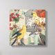 Dieses Bild von gelben Papageien und Blume ist eine wunderschöne moderne Collage aus mehreren antiken Malereien von Vögeln, Blume und Vogelkäfigen.