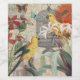 Dieses Bild von gelben Papageien und Blume ist eine wunderschöne moderne Collage aus mehreren antiken Malereien von Vögeln, Blume und Vogelkäfigen.