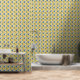 Schöne gelbe und blaue Blumen bedecken diese Tapete. Hell und fröhlich, mit einem französischen Country-Look. Diese Version hat Blume in einem nahtlosen, gefliesten Muster.