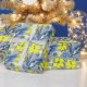 Gelbe und blaue Blumen mit Glitzern Geschenkpapier