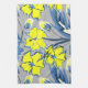 Gelbe und blaue Blumen mit Glitzern. Geschirrtuch