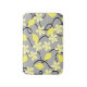 Blume Blumendesign in sonnigen Gelbtönen. Kleine hellgelbe Blumen mit hellgelben Blätter und grauem Hintergrund.