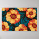 Gelbe und rote Blume mit Aquamarinen Blätter Poster