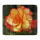 Auf dieser dekorativen, gläsernen Schneideplatte, die das Foto einer wunderschönen, gelben und roten Begonia-Blume zeigt, würfeln und würzen Sie Ihr Essen sicher. Ideal für das Zerkleinern von Obst und Gemüse sowie Käsesorten. Ein schönes, blumengeschmücktes Design!
