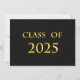 Klasse der 2025-Karte mit schwarzer Textur für den Hintergrund und gelb für den Namen. Die Rückseite ist eine schwarze Textur mit gelben Buchstaben für die Graduierungsankündigungen.