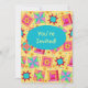 Gelbe und türkisfarbene Patchwork Quilt Block Art Einladung