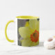 Genießen Sie Ihr Lieblings-Heiß- oder Kaltgetränk in dieser Kaffeemaschine-Tasse, die ein umgehendes Foto von weißen und gelben Daffodien mit orangefarbenen Tassen aufweist. Ein hübsches, blumengeschmücktes Design. Wählen Sie die gewünschte Tasse und den gewünschten Stil aus.