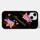Das Abstrakte iPhone-Gehäuse mit gelben violetten Blumen bietet ein schönes und elegantes Design aus Aquarellfarben-Blume und einen schwarzen Hintergrund. Personalisieren Sie mit Ihrem Namen oder inspiriert. Genieße den Moment.