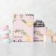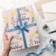 Gelbe W/C-Blume - Namen und Datum Rosa Hochzeit Geschenkpapier