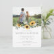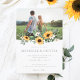 Feiern Sie Ihre Hochzeit im Landhausstil mit unserem eleganten Foto-Hochzeitsdesign. Unser Design besticht durch handbemalte, goldgelbe Sonnenblumen und natürliche Vegetation, die zu diesem minimalen, eleganten Landhausstil-Design passen. Einladende Details sind wunderschön gestaltet, um diese schlichte und elegante Hochzeitseinladung mit Ihrem eigenen Foto zu kreieren. Alle Blume sind handgemalt von der Moodthology Papery.