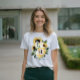 Eleganter Abschluss-T - Shirt im Landhausstil. Die handbemalten, goldgelben Sonnenblumen, cremefarbenen Blumen und die natürliche Vegetation schaffen dieses elegante Landhausstil. Passen Sie Ihren Namen und das Schuljahr an. Auf der Rückseite finden Sie unsere handgezeichnet Aquarellgelben Sonnenblumen und das Jahr. Alle Blume sind handbemalte Originalkunstwerke, die von der Moodthology Papery entworfen wurden.