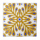 Gelbe, weiße und goldene Fliesen mit grünen Blumen