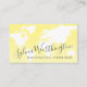 Helle und fröhliche gelbe Weltkarte auf einer eleganten, minimalen und modernen Visitenkarte für einen Agent, Reise Blogger, Zuhause-Besitzer oder Hochzeit in Urlaubsort-Planer. Alle Farben und Schriftart können an Ihre Markenfarben für kleine Unternehmen angepasst werden.