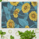 Gelbe Zinnien in dunkelblau Geschirrtuch