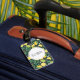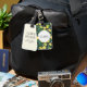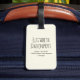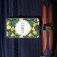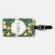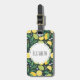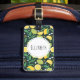 Personalisierte Gepäckmarke mit niedlichem Muster aus gelben Zitronen und grünen Limonen Früchten mit Blätter Set auf dunkelgrünem Hintergrund.