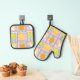 Gelbe Zitronen Rosa Streifen Ofenhandschuh & Topflappen-Set