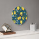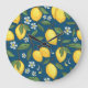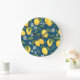 Gelbe Zitronen: tropisches Fruchtmuster. Große Wanduhr