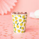 Gelbe Zitronen und grüne Blätter Pappbecher