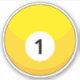 Eine Abbildung einer einfachen gelben Billardkugel Nummer eins. Dieses Innen- oder Außenspiel ist eine der vielen Möglichkeiten, sich mit Freunden, Kollegen und Familien zu verbinden. Dieses niedliche Sportdesign ist eine Geschenkidee für Sportliebhaber, Schwimmer oder Snooker Liebhaber, Freunde, Vater und Mutter.
