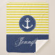 Gelb- und Marineblauentwurf mit Anker. Diese reizende sherpa Decke hat auch kundengerechten Textbereich. Schreiben Sie dort Ihren Namen oder Freundname oder jeder möglicher Text, die Sie wollen! Haben Sie das Spaßbesonders anfertigen!