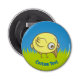 Ein Kute und ein Funny yellow bird cartoon on on grass and sky background. Custom Text.