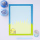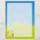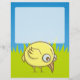 Ein niedlicher und lustiger gelber Vogel Cartoon auf Gras und Himmel Hintergrund.