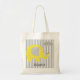 Ein niedlicher Elefant-Design-Totbeutel, der sowohl Kindern als auch Erwachsenen gefallen wird, die Elefanten Liebe bieten, ist mit einem niedlichen gelben Elefanten mit grauen Ohrmustern und einem grauen, Zickzack gestreiften Schirm auf grauem und weißem Untergrund ausgestattet.