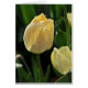Inside inscription (kann geändert oder gelöscht werden): "Möge Schönheit und Licht durch den Tag schlucken!" Das Sonnenlicht hebt die gelben Blätter einer gelben Tulpe hervor.