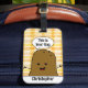 Ein schönes Gepäckanhänger mit einer niedlichen, fröhlichen braunen Kartoffel aus Cartoon mit "This is your bag" in einer weißen Sprechblase über seinem Kopf geschrieben. Der Hintergrund ist ein niedliches Gingham Gingham Gingham Gingham Gingham Karo. Eine Vorlage unten, um Ihren Namen hinzuzufügen.